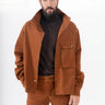 ג׳קט קצר לגבר עם סגירת כפתורים וכיס קידמי, עשוי מבד כותנה עבה עם תיפורים בסגנון ג'קט ג'ינס.